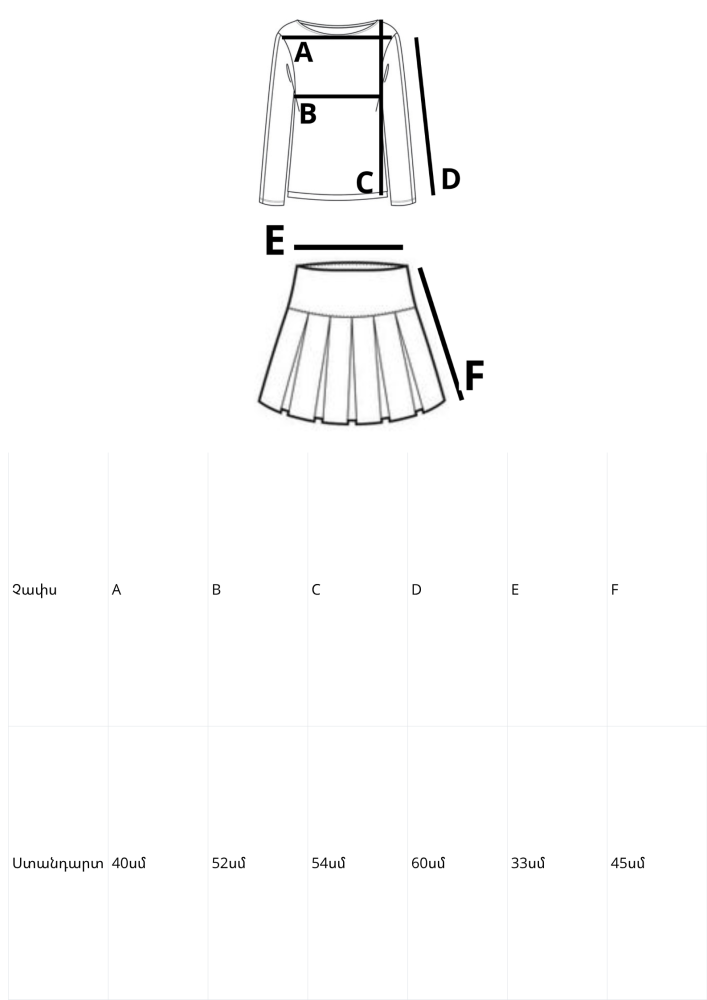 Ստանդարտ | 40սմ | 52սմ | 54սմ | 60սմ | 33սմ | 45սմ |