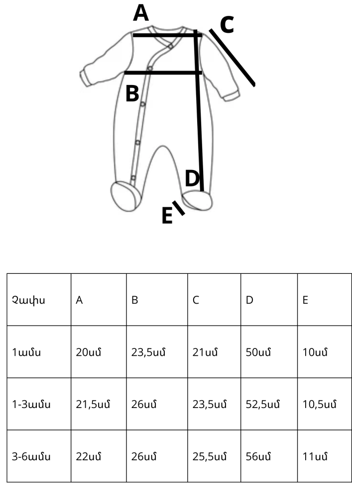 | 1ամս | 20սմ | 23,5սմ | 21սմ | 50սմ | 10սմ |