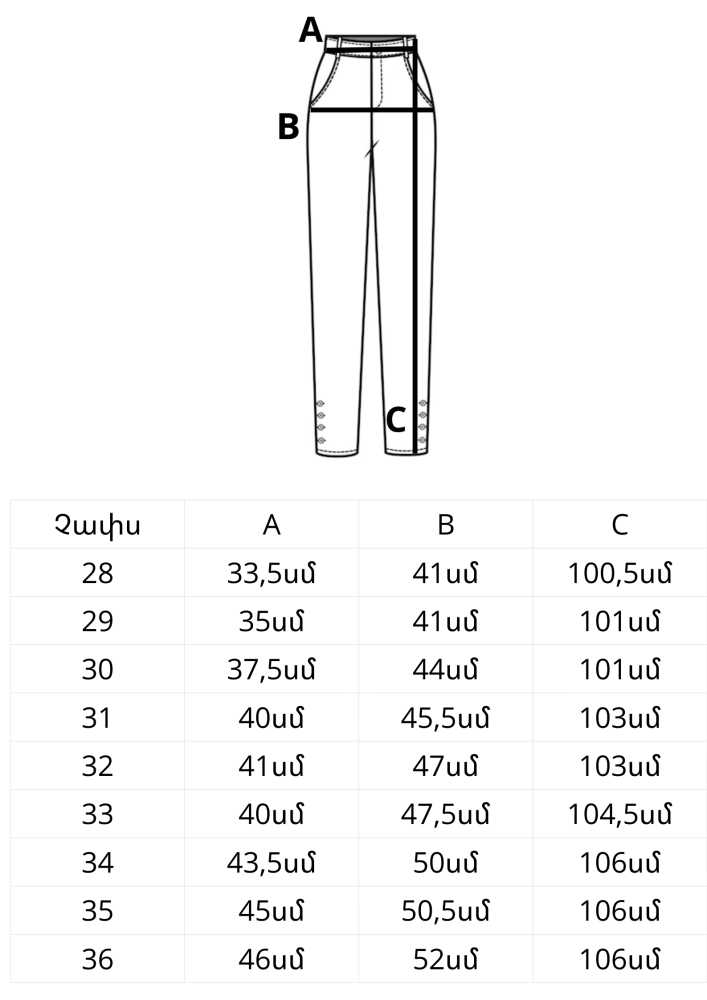 | 28 | 33,5սմ | 41սմ | 100,5սմ |