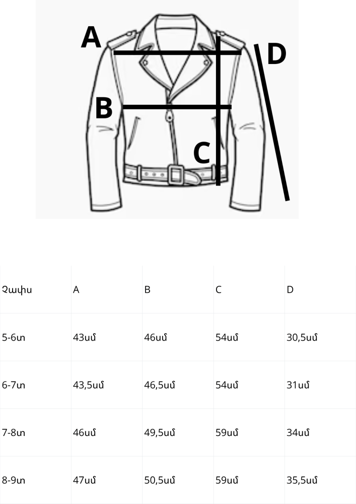 Չափս | A | B | C | D |