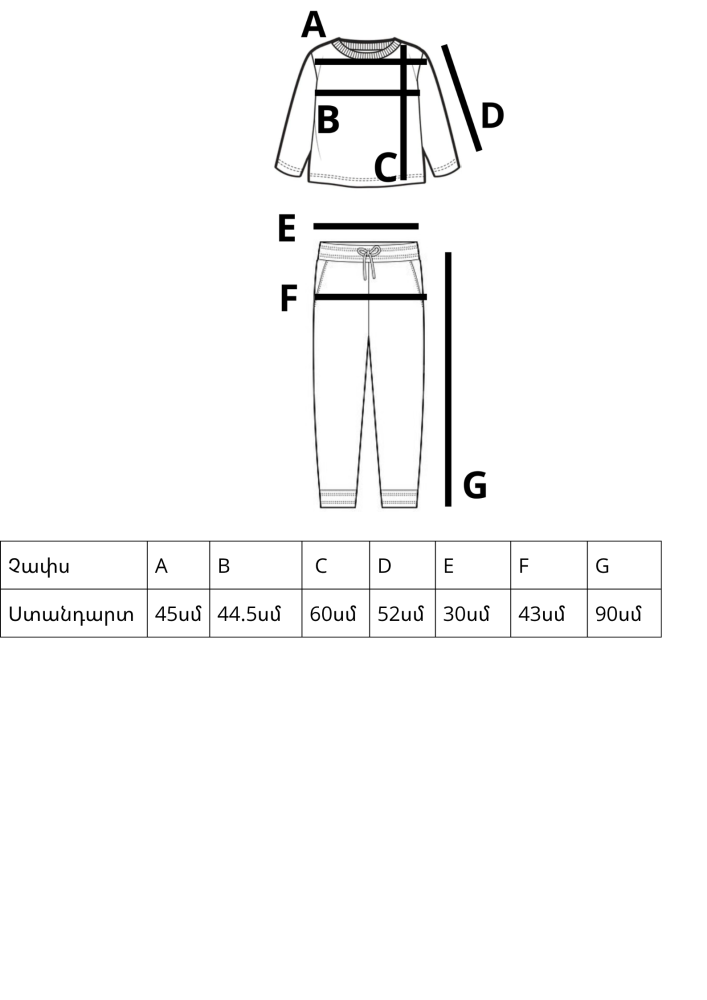 | M | 45սմ | 44.5սմ | 60սմ | 52սմ | 30սմ | 43սմ | 90սմ |