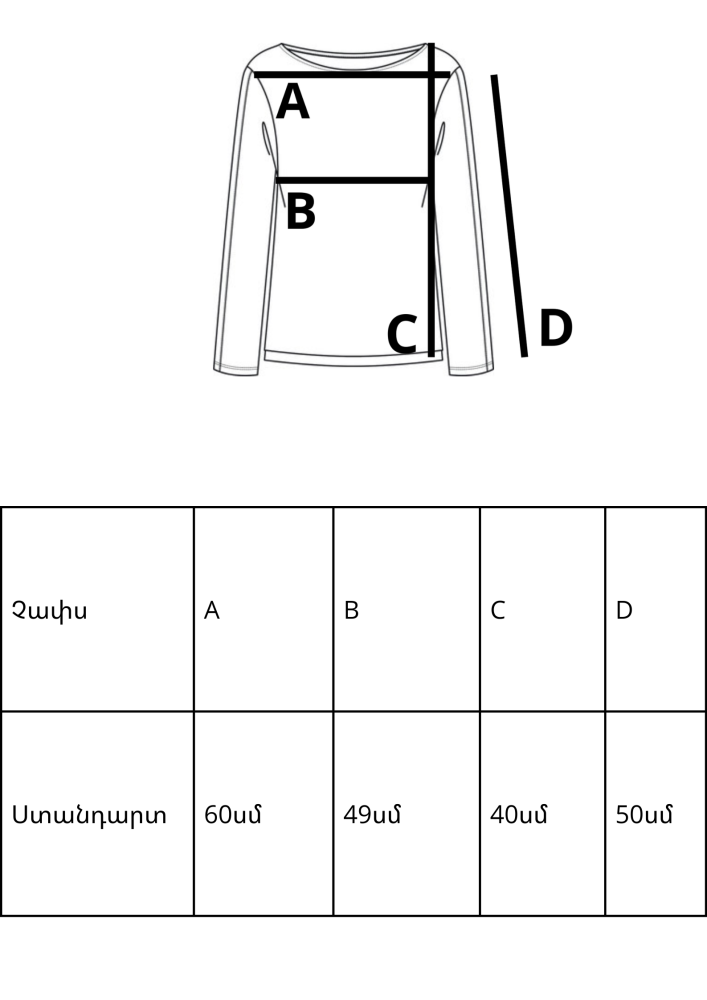 | Ստանդարտ | 60սմ | 49սմ | 40սմ | 50սմ |