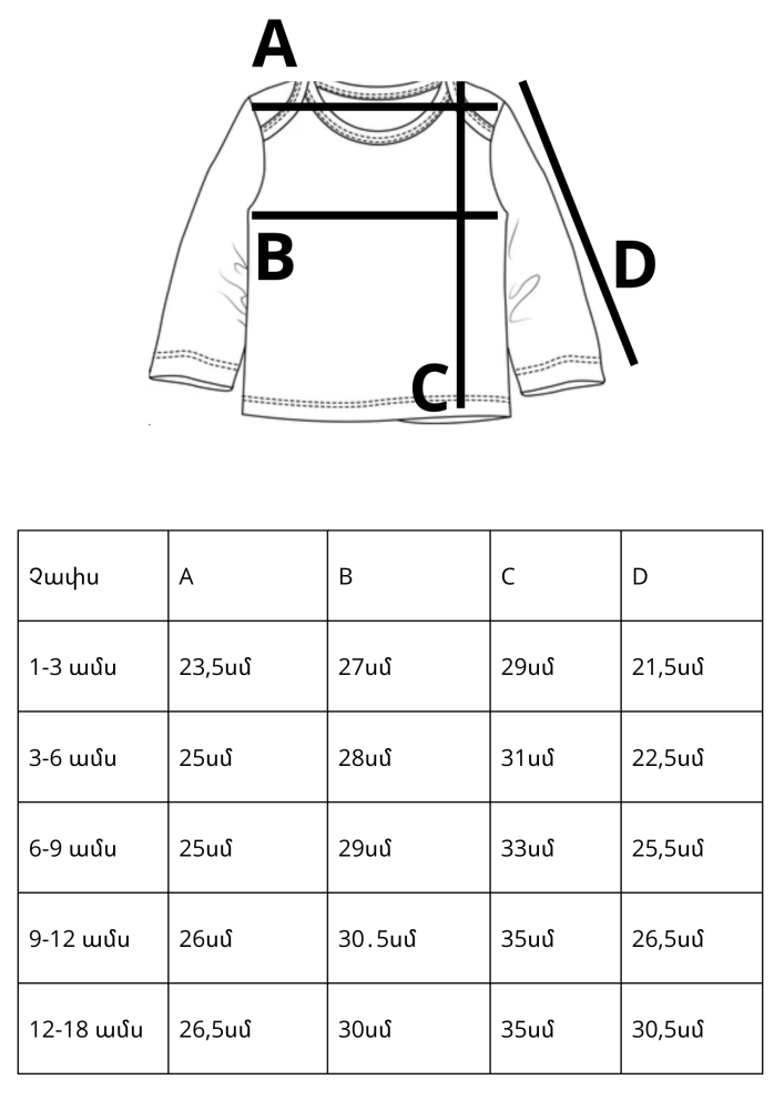 1-3 ամս | 23,5սմ | 27սմ | 29սմ | 21,5սմ |